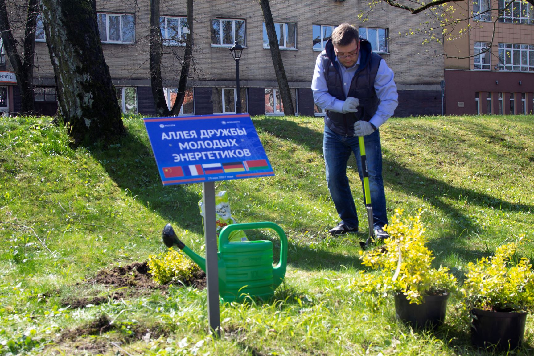 Руководители исполнительного аппарата «Янтарьэнерго» во главе с генеральным директором Кириллом Юткиным высадили 900 виол, 10 кустарников бересклета, рододендрона и убрали территорию в 5000 квадратных метров от мусора.